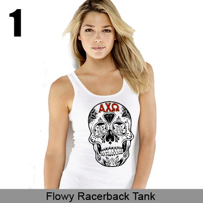 How To Order: select your garment, select your size, then choose color 1 and color 2. Color 1 will be used for the Letter Color and Color 2 will be used for the outline color on the Greek Symbols. The skull will remain black and white. Please select your Sororities Greek letters above - we will only use the Greek Symbols in the design.