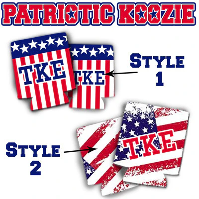 Just in time for summer this Patriotic Koozie can be made for any Sorority or Fraternity. Two styles to choose from. Style 1 has your organizations' Greek Symbols printed on both sides. Style 2 has a faded American Flag wrapped around and your organizations' Greek Symbols will be printed on the front. Please select your Fraternity or Sorority name - we will only use the Greek Symbols on the coozie. This is a printed product.