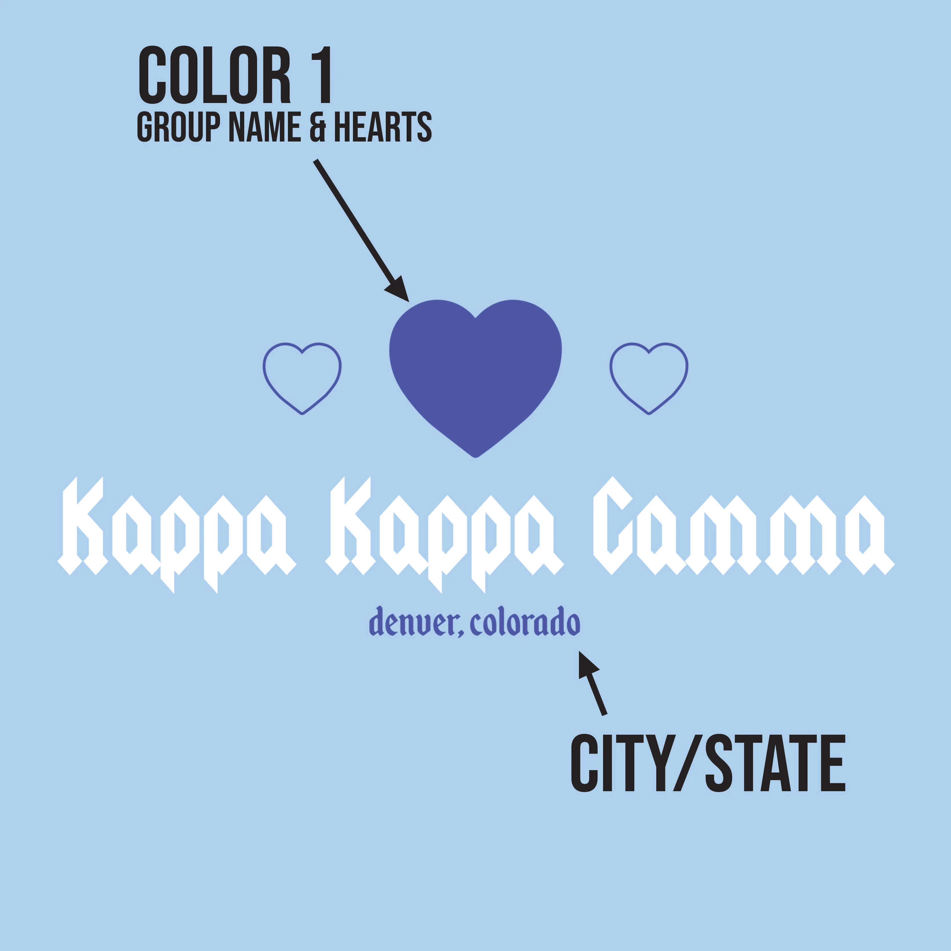 Show us how much you love your organization with our brand new Ebcgantment Heart Design. This new design comes custom with your city can state under your Greek Organization and 2 smaller hearts around a larger filled in heart.