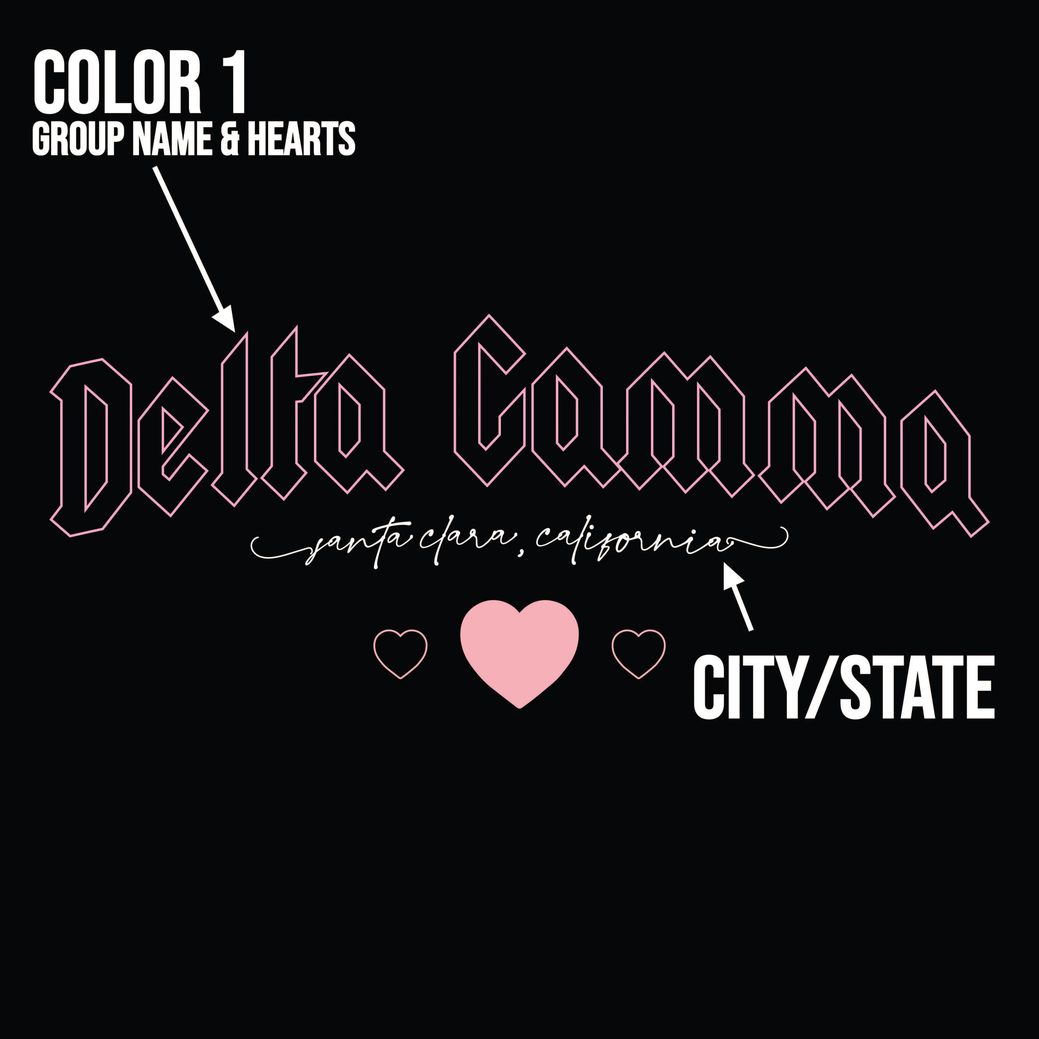 Looking to show off your love for your organization? Look no further then our printed metal heart design that comes custom with your city can state under your Greek Organization in script font.