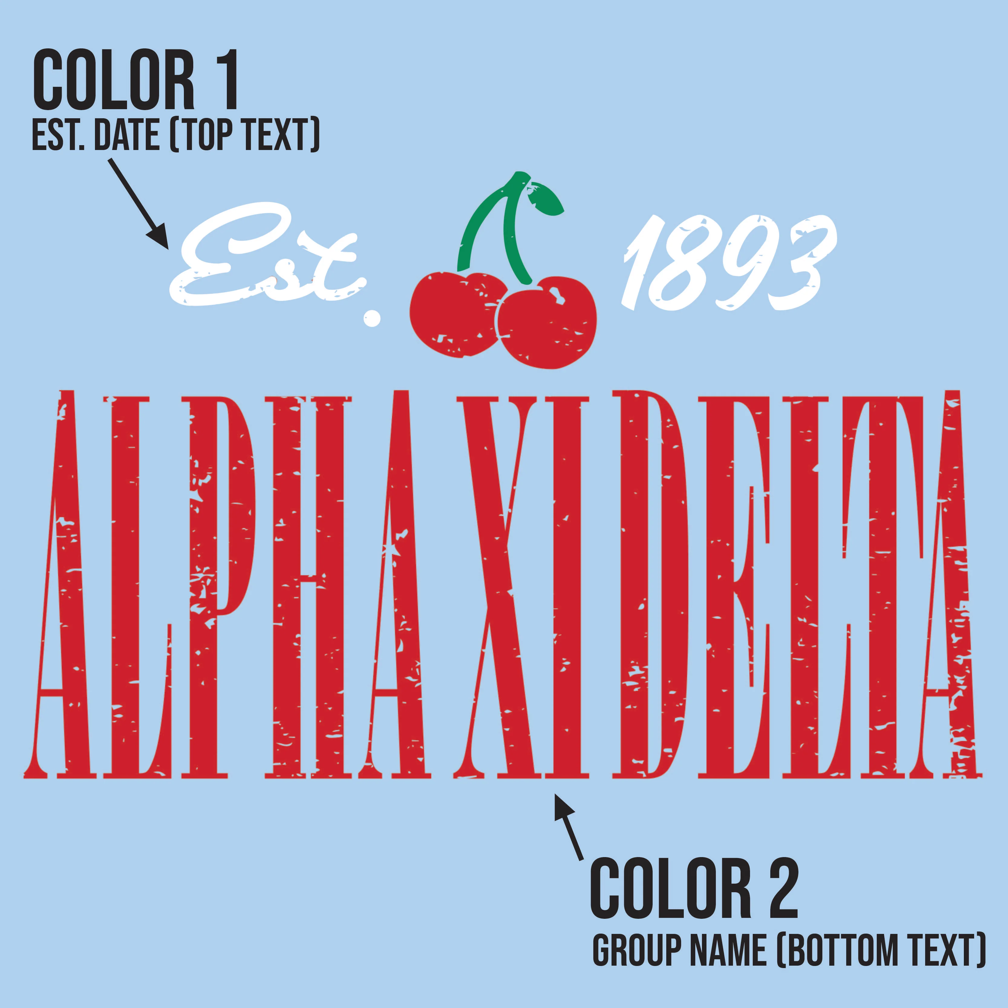 Brand new design with an NO MINIMUM PEICE ORDER! Get this Sorority Retor Cherry Design on the garment of your choice. You can select a T-Shirt, Long-Sleeve Tee, Crewneck Sweatshirt or Hoodie to put the design on. T-Shirt is $19.95, Long-Sleeve are $24.95. Crewneck sweatshirts are $35.95 and Hoodies are $39.95.