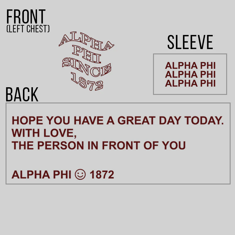 Garment will come with the design printed on the front! Just select your garment, garment color, size, and your greek organization's name and established date. All garments are unisex/men's sized. Rush service is available and can be selected during checkout.